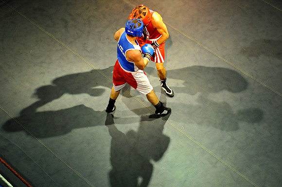 Boxer/Motive: Schattenboxen -- Sergej Balan (rot) gegen Silvio Colamazza (blau)